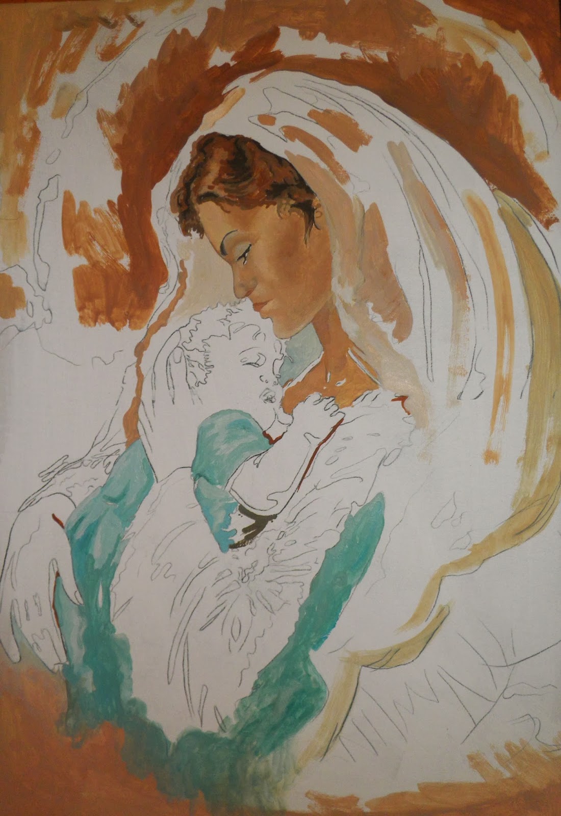Często zdarza mi się malowac obrazy na podstawie reprodukcji mniej lub bardziej znanych przedstawień religijnych. Tak było i tym razem.
